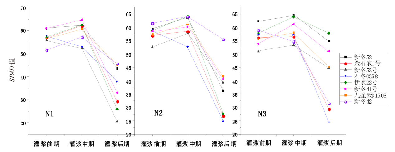 Key words: wheat, nitrogen application rate, grain-filling stage, chlorophyll content, agronomic traits, yield