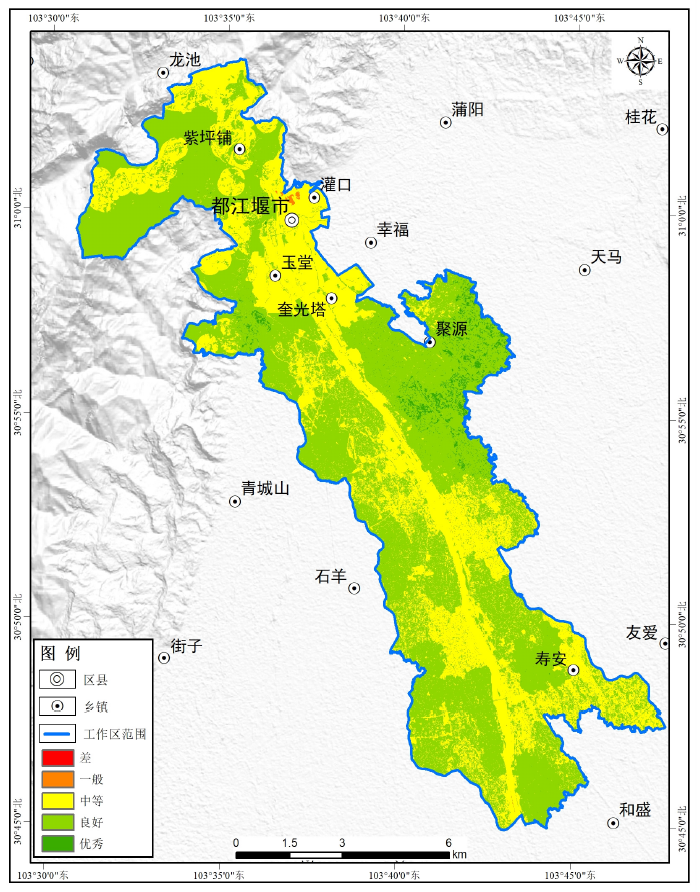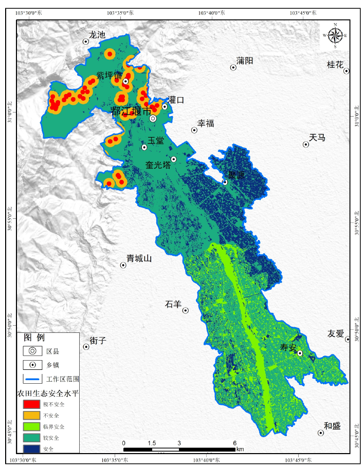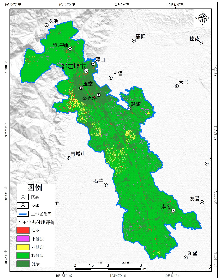摘要: 成都平原是打造天府粮仓的核心区,其耕地保护对国家粮食安全具有重要意义。以成都平原精华灌区典型区域为研究对象,针对该区域农田生态系统进行调查评价。通过综合运用遥感技术、实地调查和模型分析等多种方法,搜集、获取研究区农田生态系统的本底数据。利用层次分析法(AHP)、熵权法和专家打分法,构建生态格局、生态健康、生态安全和生态服务功能4个维度的评价指标体系,并确定各指标权重。结果表明:(1)2019—2022年研究区耕地面积呈现先减少后增加的趋势,表明耕地保护工作初见成效,农田生态环境本底状况良好。(2)研究区农田景观破碎化问题显著,产权权属、道路阻隔分切等因素导致耕地连片度较低,农村人口人均耕地仅为0.08 hm2,不利于农业规模化、机械化发展。(3)研究区农田生态系统整体状况较好,其中生态系统状况良好和中等的面积占比为98.05%,生态安全等级为安全和较安全的农田面积占比78.42%,生态健康等级为健康和较健康的面积占比95.55%,生态服务价值较高,适宜开展农业生产。本研究构建的评价方法可为成都平原耕地保护、质量提升和天府粮仓建设提供科学依据,并为其他区域农田生态系统评价研究提供参考。