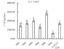 | 长江下游区 | 125.83c | 48.32a | 4.68a | 52.29b | 27.70b | 0.81b | 187.13a | 8.41a | 25.88a | 4.38ab |
