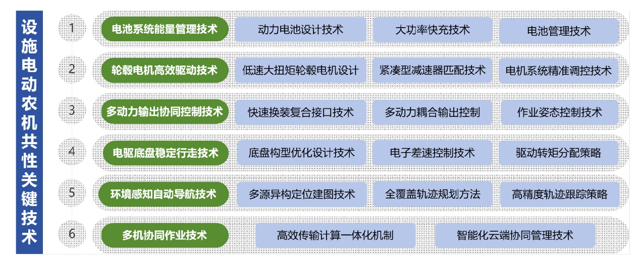 随着中国设施农业规模的不断扩大,电动农机的研究与应用已成为农业领域的热点,机械化与智能化成为现代设施农业发展的重要趋势。本研究旨在对设施电动农机装备进行综合梳理,分析其技术特点、应用领域及研究进展,并针对当前发展中的短板提出改进建议,以推动中国设施电动农机装备的进一步发展与产业完善。本研究通过综述现有研究成果,系统剖析智能化设施电动农机装备的生产体系,重点探讨电池系统能量管理技术、轮毂电机高效驱动技术、多动力输出协同控制技术、电驱底盘稳定行走技术、环境感知自动导航技术以及多机协同作业技术等6项关键共性技术。同时结合当前在动力电池、电驱系统、环境感知、姿态控制等方面的发展短板,提出优化方向。研究表明,设施电动农机装备通过自动化和智能化技术,能够高效执行种植、收获、喷药、施肥、除草等多项任务,显著提升了农业生产的效率、准确性和可持续性。然而在动力电池续航能力、电驱系统稳定性、环境感知精度及姿态控制等方面仍存在技术瓶颈,制约了其进一步推广应用。为加快中国设施电动农机装备的发展与产业完善,本研究从农机农艺融合、产学研用一体化、多学科交叉融合、共性关键技术突破、基础配套设施建设及标准体系构建等角度提出建议。未来研究应聚焦于技术短板,推动多领域协同创新,以实现设施电动农机装备的全面升级与广泛应用。
