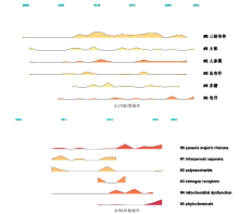 本研究基于文献计量学方法,系统分析珠子参研究的全球发展态势与前沿热点(2000—2024年)。检索Web of Science(WOS)核心数据库和中国知网(CNKI)数据库,共纳入相关文献353篇(英文95篇,中文258篇),运用文献计量学与知识图谱技术(合作网络、共现分析、突现探测)进行综合分析。合作网络分析显示,国内形成以宋小妹(陕西中医药大学)为代表、国外形成以Shi Mengqiong等为代表的研究群体,且国际合作日益紧密。研究主题对比显示,中文文献聚焦于珠子参的物质组成,英文文献则侧重于分子机制及细胞通路。突现探测表明,三萜皂苷是持续的研究热点。中英文研究存在显著的学科侧重差异,突显了整合物质基础研究与分子药理机制研究的迫切性。本研究可为深化珠子参研究、优化学术资源配置、促进跨学科整合及推动中医药现代化与国际化提供重要的数据支撑与决策参考。
