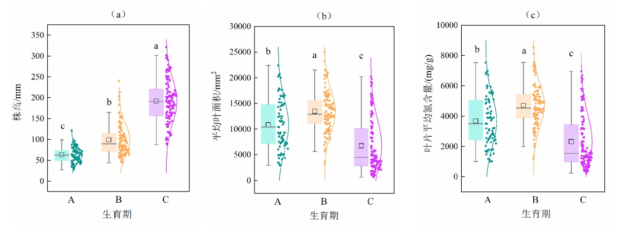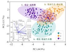 为探究深地封闭环境中植物生长敏感期的动态变化与适应性调控规律,以本氏烟草(Nicotiana benthamiana)为模型,采用L9(3³)正交试验设计调控光照强度(4000~12000 Lux)、温度(20~30℃)和湿度(60%~80% RH),定量测定株高、叶面积等生长及生理指标,结合主成分分析(PCA)解析环境敏感性特征。结果表明,本氏烟草周期可划分为萌发-快速生长期(1~14 d)、快速生长-稳定期(15~62 d)及稳定-成熟期(63~76 d);PCA分析显示PC1-PC2累计解释58.6%的变异,其中PC1 (44.90%)主要关联光照强度与叶面积,PC2(13.70%)主要关联土壤氧化还原电位(Eh)与温度。植物在生长初期(1~62 d)对环境高度敏感,尤其对光照和温度响应显著,12000 Lux组日均株高增长量达4.82±0.15 mm,较8000 Lux 组提升17.0%;成熟期(63 d后)转向生理调控主导。第63天为环境依赖型生长向生理调控型生长的敏感转折点。优化的种植条件为20℃~25℃、70%~80% RH、8000~12000 Lux,此条件下植株光合-氮代谢耦合效率最优,叶绿素含量较30℃/60% RH/4000 Lux对照组提升28.3%,氮同化能力提升31.5%。本研究揭示了深地密闭环境下植物的阶段性适应机制,为深地植物种植环境调控与深地农业理论构建提供理论参考。