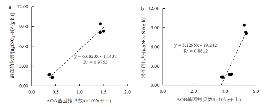 | 处理 | AOA基因拷贝数/(×106 copies/g 干土) | AOB基因拷贝数/(×107 copies/g 干土) | AOA/AOB |
