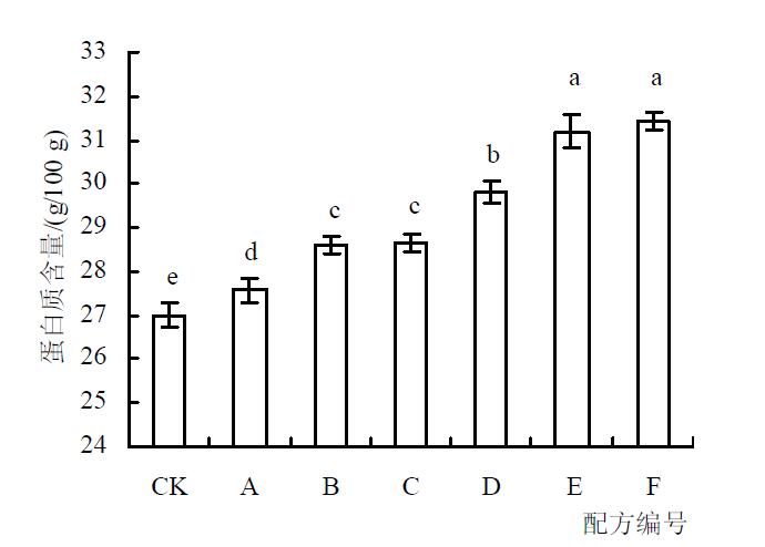 草菇传统栽培基质(棉籽壳、稻草)存在供应紧张、成本攀升的问题。为拓展廉价优质基质来源、推动农业废弃物循环利用,以芦竹为替代原料,设置0%(CK)、20%、40%、50%、60%、80%、99%不同芦竹添加质量比例梯度开展草菇栽培试验,分析不同配方对草菇生长特性、商品性状、产量及营养成分的影响。结果表明:(1)芦竹含量≤60%时,草菇菌丝生长速度(2.40~2.42 cm/d)、出菇周期(18~23 d)、商品性状(菇长4.33~4.83 cm、单菇重8.79~10.21 g)、鲜菇产量(535.16~550.42 g/框)及生物转化率(7.64%~7.86%)与CK处理无显著差异;芦竹含量≥80%时,各项指标显著下降。(2)60%芦竹配方的营养品质最优,蛋白质(29.83 g/100 g)、必需氨基酸(9.43 g/100 g)、呈味氨基酸(12.46 g/100 g)、灰分(9.00 g/100 g)及粗纤维(5.5 g/100 g)含量均显著高于CK,脂肪含量(1.3 g/100 g)低于CK。研究认为,芦竹可作为草菇栽培基质的优质替代原料,60%芦竹+39%棉籽壳+1%石膏为最优配方,该配方兼顾了草菇生长、产量与营养品质,可实现资源高效利用与成本降低的双重目标。