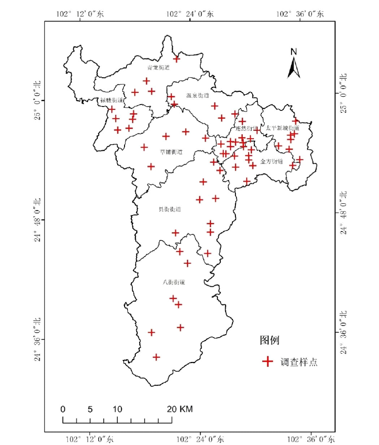 | 县街街道 | 耕地,林地,住宅用地,交通运输用地,其他土地 | 乔木林地,农田,村镇用地,灌木林地,空闲地 | 全面踏查法、样线法 |