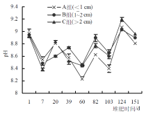| 堆肥结束 | 9.02±0.2696b | 8.56±0.3799b | 11.04±0.2501a | |