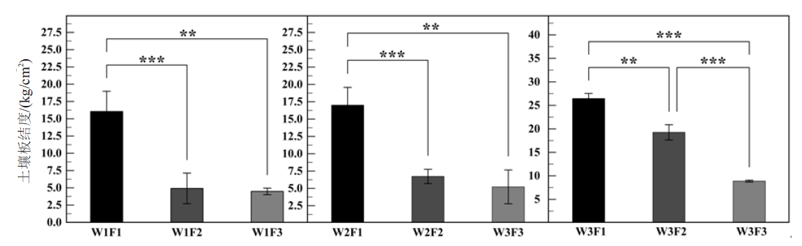 | 土壤板结度 | 8.41 | 8.87 | 9.85 |
