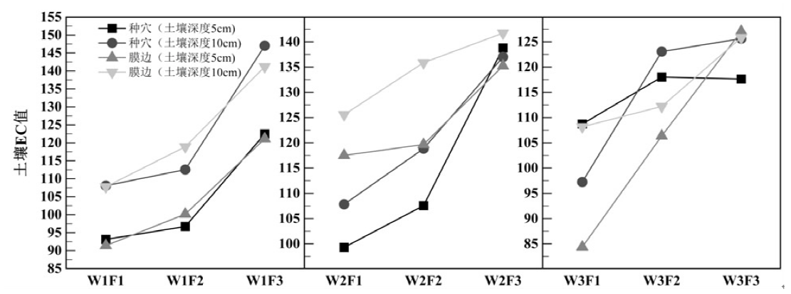 | 土壤EC值 | 种穴土壤深度5 cm | 0.191 | 0.003 | 0.284 |