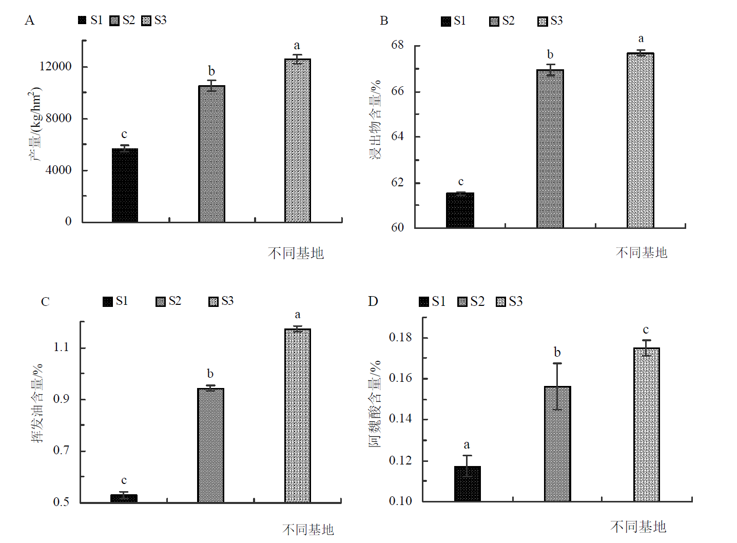 通过探究不同海拔和气候因子对云当归产量和质量的影响,为昭通云当归栽培区域的精准选择提供科学依据。以云当归幼苗为试验材料,设置3个地理气候环境不同的试验基地,移栽采收后,分析海拔、气温、降水量、光照对产量、浸出物、挥发油和阿魏酸含量的影响。结果表明,在昭通云当归可种植的生态区域内,海拔、降水量对产量、浸出物、挥发油和阿魏酸含量均呈显著正相关,气温对产量、浸出物、挥发油和阿魏酸含量均呈显著负相关,光照对产量、浸出物含量均呈显著负相关,对挥发油和阿魏酸含量无显著相关。主成分分析发现,各试验基地云当归综合产质量排名从高到低依次为:S3>S2>S1。OPLS和变量投影重要性分析发现,综合产质量与气温呈显著负相关,与海拔和降水量呈显著正相关,与光照呈较弱负相关;环境因子对综合产质量的影响强度大小依次为:气温>海拔>降水量>光照,其中气温和海拔是主导因素。综合分析,昭通不同区域的海拔和气候因子对云当归产质量有显著影响,昭通北部、中部的较高海拔区域更适合云当归生产,南部宜选择更高海拔区域,并注重抗旱和遮阳。