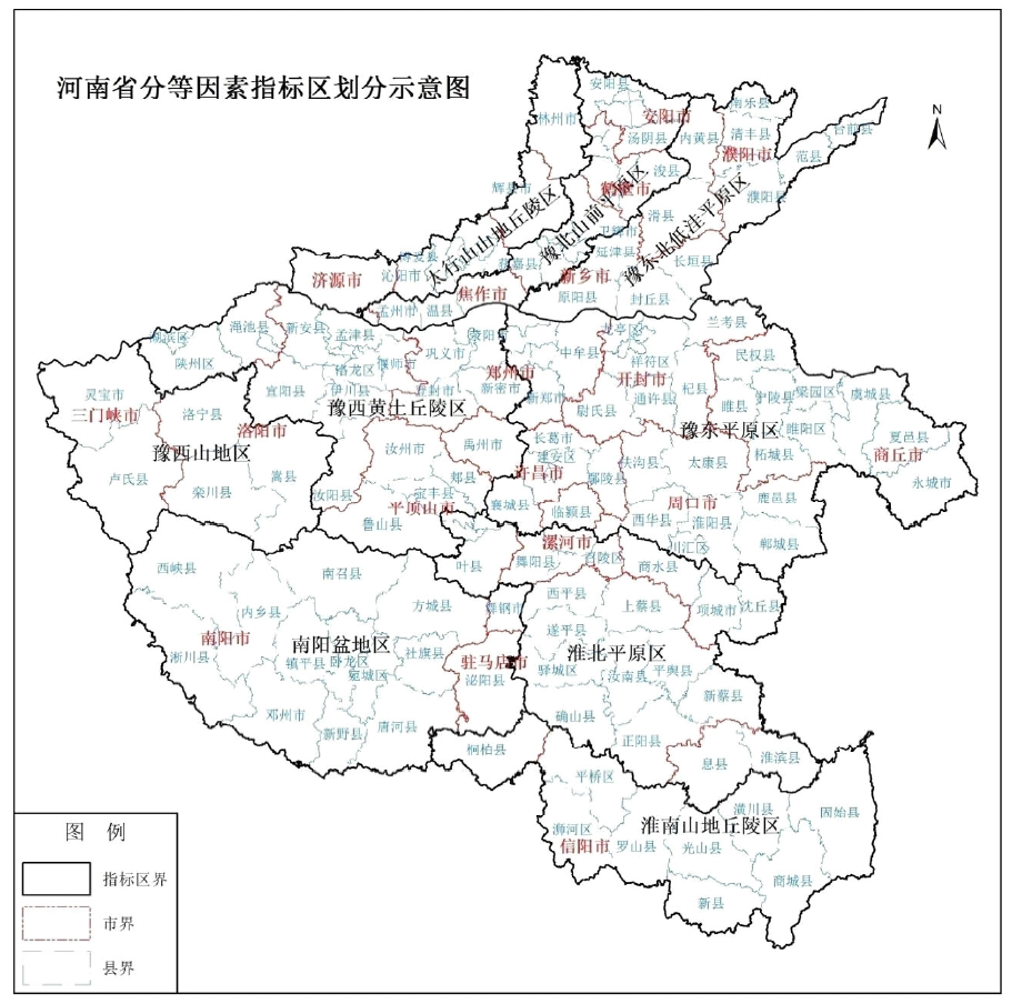 | 3 | 太行山 山地丘陵区 | 4等 | 6 | 豫北山前 平原区 | 5等 | 9 | 豫东平原区 | 6等 |