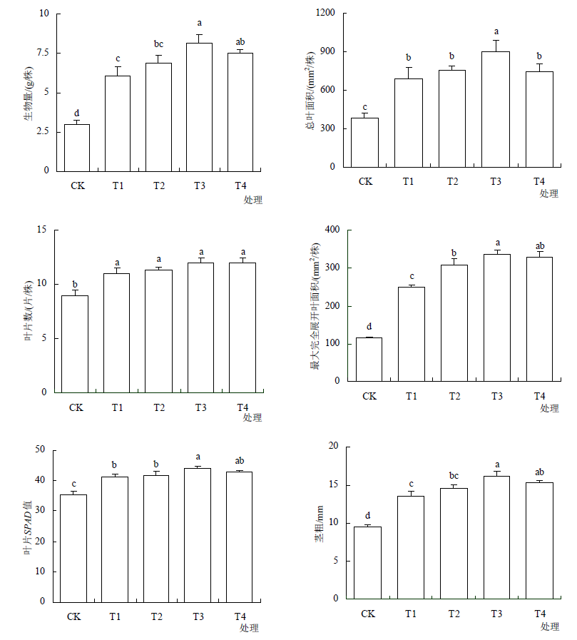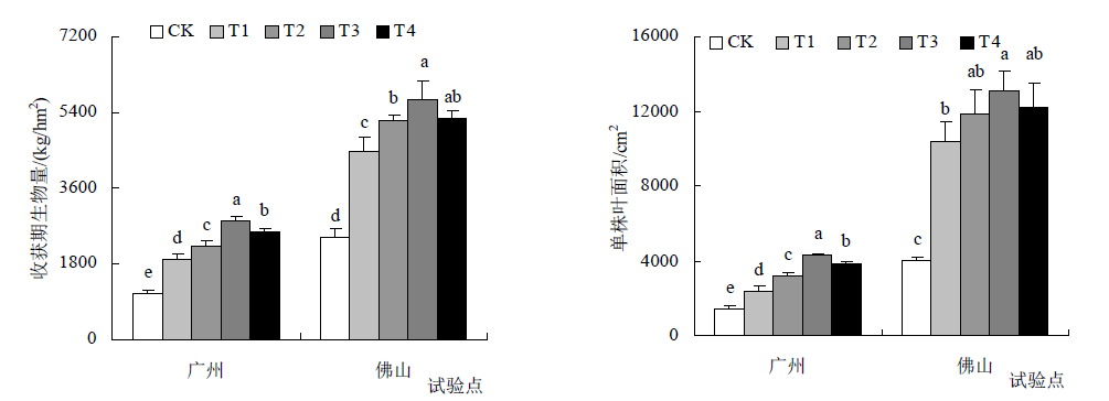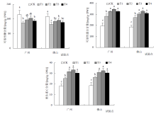 | 广州 | CK | 1.15±0.09b | 0.56±0.05bc | 2.87±0.28c | 2.51±0.20a | 0.21±0.01c | 24.54±1.29bc |