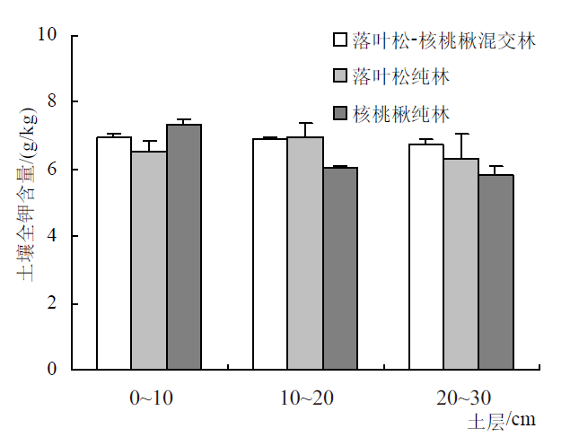| 落叶松-胡桃楸混交林 | 0~10 | 5.83±0.11 | 216.16±9.23 | 9.08±1.69 | 0.96±0.04 | 7.34±0.14 | 15.55±2.30 | 283.42±8.82 |