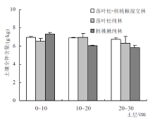 | 胡桃楸纯林 | 0~10 | 5.65±0.11 | 126.66±4.38 | 6.88±1.90 | 1.06±0.17 | 6.93±0.11 | 32.93±3.63 | 243.82±12.90 |