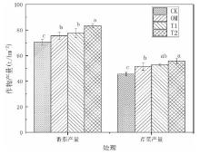 | T2 | 有机肥+高量调理剂 | 有机肥+土壤调理剂+追肥水溶肥料 (45 t/hm2+900 kg/hm2+2400 L/hm2) | 有机肥+土壤调理剂+追肥水溶肥料 (30 t/hm2+450 kg/hm2+900 L/hm2) |