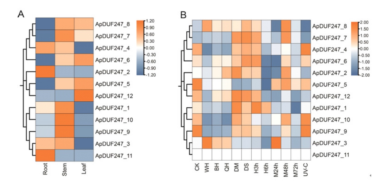 李云宾, 黎玉萍, 成钦, 等. 芦笋DUF247基因家族成员鉴定及表达分析[J]. 生物技术通报, 2025, 41(1):198-209.