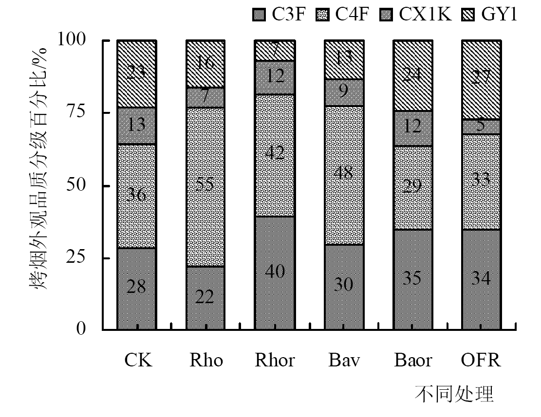 周开雁, 曲平治, 何孝兵, 等. 一种专用生物有机肥对云烟87产质形成的影响[J]. 安徽农业科学, 2015, 43(32):250-252.